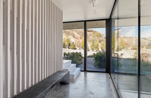 This contemporary architectural home has been meticulously crafted to harmonize with its natural surroundings, while boasting an unwavering commitment to quality and artistry. Nestled into the mountainside, it offers breathtaking vistas and a seamless integration of indoor and outdoor living spaces. The Living Room, Dining Room, and European Kitchen open up to sweeping mountain views and a warm wood-burning fireplace.