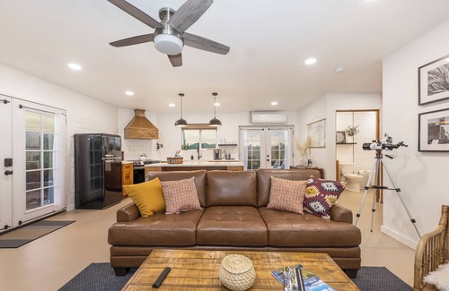 This casita boasts a full kitchen, BBQ, and private patio with a telescope for stargazing. The bedroom includes a comfortable queen size bed and is climate-controlled to provide ultimate comfort.