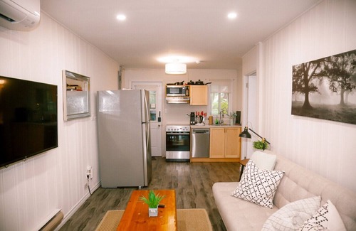 With 3.5 acres of space and 200 feet of private waterfront and deck, you can truly connect with nature. There are kayaks, canoes and other equipment for free rental. We offer high speed fibre Internet and also have over 5,000 sqft. of indoor common space for you to enjoy – from a warm dining hall to a vibrant games room. Each cabin is equipped with a smart lock for self check-in / out, modern appliances, flat screen TV and a wood-burning fireplace
