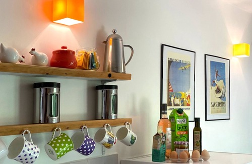 Inside features: Ground Floor: Galley kitchen with dishwasher, washing machine, fridge with freezer box, oven, hob, microwave, coffee machines and cafetières, dining table & chairs, storage heater and stairs