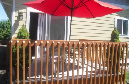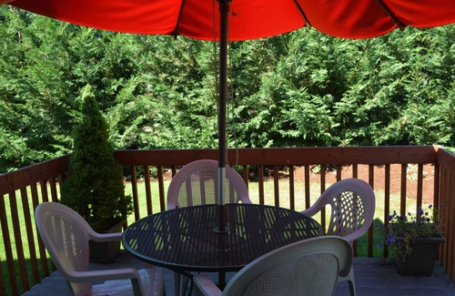 After a busy day, retreat to your private back yard and deck to relax, barbecue and plan the next day's adventure. Enjoy playing Bocce ball or horse shoes in the backyard or Foosball in the garage. The house is stocked with many games and books and a wooden train set, Lincoln logs and other toys for the kids.