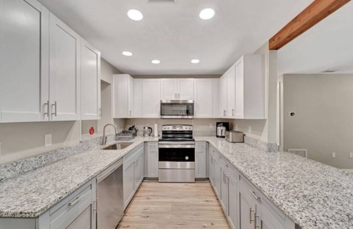 foot home includes 4 bedrooms, 2 baths comfortably sleeps up to 10 guests.The house is equipped with all your basic essentials to make you feel right at home.