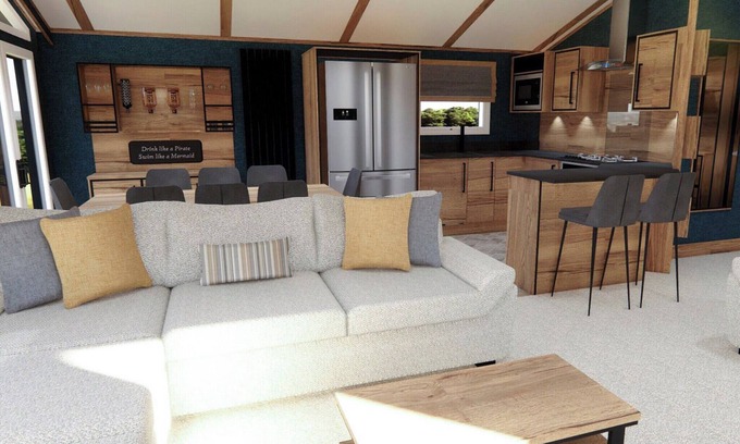 Contemporary lodge with one spacious king-sized bed with en suite. Double room with en suite shower room. Two twin and additional sleeping for two in the lounge area. Separate Shower room. Open plan lounge/kitchen/diner. Fully equipped kitchen with microwave. Heating throughout. Patio doors leading to verandah with outdoor hot tub. Bath and hand towels.. Escape to the countryside in Lincolnshire where the natural beauty of the surrounding area, stunning new accommodation plus a 9-hole golf course, driving range, new adventure playground, outdoor splash zone and restaurant come together at for a perfect location to relax and reconnect with friends and family.