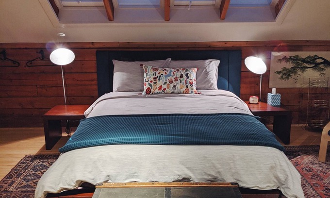 The Wooden House is a spacious almost 900 square foot urban retreat in the heart of the North End. This getaway is a perfect balance of industrial and cozy warmth. Walk, scooter, or Uber to Hyde Park and downtown from this quiet hideaway. In the warmer months, open the bay door to let the outside in. When it’s cooler the radiant floor heat will keep your toes toasty and when it gets warmer, you can cool down with the a/c. If you want more heat, turn the sauna on and have a sweat. Extra large bedroom with comfortable queen bed and additional lounge space on 2nd floor. Please note that because we share the backyard space & we have a dog, we cannot accept bookings from those with service animals. We, for security reasons, have two outdoor cameras at each entry. We are designers…and this is a special place that we have put love & care into. It’s not a generic house managed by a big property management company. You’ll see like so many of our past guests. Looking forward to hosting you!
