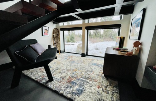 Modern meets all things warm with rough sawn beams, open spaces, contemporary furniture, coffee house brick back drops, a 60” linear fireplace, heated bathrooms floors. and 3 acres of privacy. Home finished in 2020, custom designed to capture the mountain ranges, natural light through over 50 windows, and provide an open air feeling with 28’ ceilings. Recently selected as a Northwest Architectural Digest highlight!