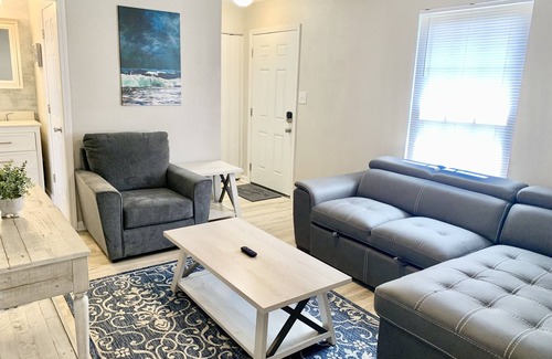 Welcome to Boyd's Bungalows of Kokomo where we are more than just a room! This contemporary one bedroom condo is a home away from home and is perfect for a few nights or for a few months. This condo packs a punch with everything that you need plus more. The living room offers a stylish and comfortable leather sofa perfect for relaxing after a long day of activities or work along with a big screen Roku TV. The bedroom has a memory foam queen size bed, bed side tables, plenty of room for clothing storage in the dresser and closet. The bathroom may be small but has a large walk-in shower. The kitchen offers everything you need to make any kind of meals plus a stackable washer and dryer. Don't let this little gem pass you by!