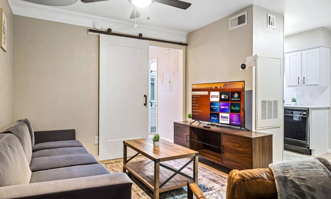 Experience the ideal balance of comfort and Austin charm in our stylish 1-bedroom apartment, crafted as an urban retreat for up to four guests. With a comfortable queen bed and a convenient queen pull-out sofa, every detail is designed for your ultimate comfort and relaxation.