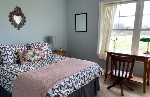 State-of-the-art kitchen overlooking an apiary, garden and patio with seating for 6. A washer, dryer, and fully stocked kitchen help make your stay comfortable and enjoyable.