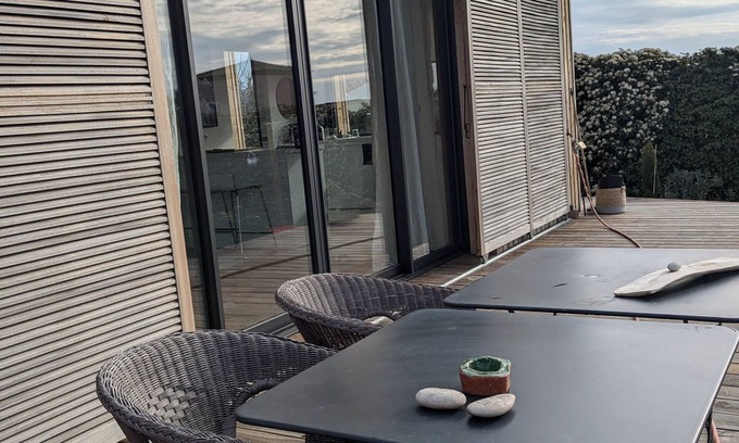 Contemporary timber-frame house Very pure, art of living, calm, serenity is located in Paraza. Contemporary timber-frame house Very pure, art of living, calm, serenity provides accommodation, featuring Child Friendly, Laundry, Air Conditioner, among other amenities. This House features Child Friendly, Laundry, Air Conditioner, to make your stay a comfortable one.