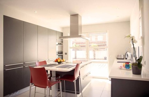 Contemporary villa between the beaches and the city ranked 5 stars is located in Capbreton. Contemporary villa between the beaches and the city ranked 5 stars provides accommodation, featuring Parking, Private Pool, Balcony/Terrace, among other amenities. This House features Parking, Private Pool, Balcony/Terrace, to make your stay a comfortable one.