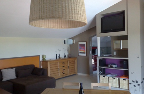 Air conditioning possible and modern full equipped kitchen and furniture. High quality comfort and prestations. Garden table, chairs and sunny beds...