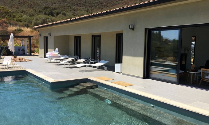 CONTEMPORARY VILLA WITH POOL AND EXCEPTIONAL VIEW 300 M BY FOOT FROM THE SEA | Villa in Sagone