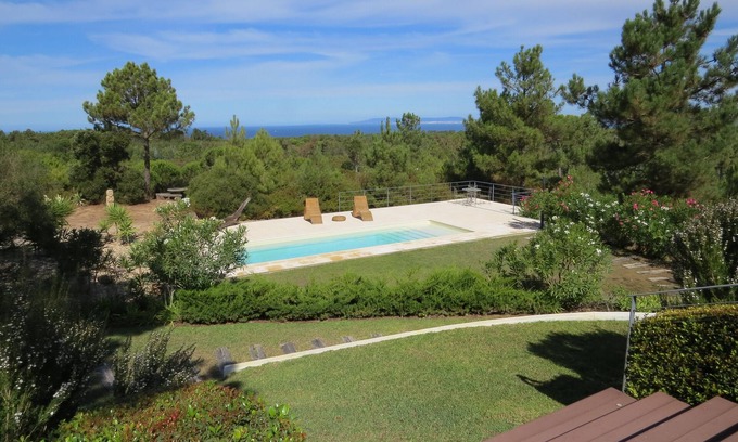 South of Lisbon, in unspoiled nature and facing the sea, with a breathtaking view of Lisbon and the bay of Cascais, with 15km of beach at its feet, our house welcomes you for a stay with many possibilities: relaxing at home between the hammock and the pool, lunch under the pines, aperitif on the terrace at sunset, days at the beach, sports activities (swimming, windsurfing, bike rides, horse riding, tennis, ...), walks in the capital (45 minutes by car) and its surroundings (Cascais, Sintra, Mafra ...), discovery of the region and its riches (fishing port of Sesimbra with its multiple restaurants, Arrabida National Park, Palmela Wine Route). Setubal, monastery of Cape Espichel, Palmela castle, palace and quintas of Azeitao ...), and why not push to Troia and Comporta, the new hidden paradise of the 'beautiful people'.