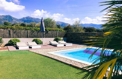 Ideally located between sea, mountains and scrubland, 5 min from the beaches and the town centre. New villa of contemporary style, all comfort with swimming pool, garden and countryside view with careful decoration.
