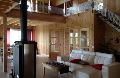 Contemporary wooden house is located in Fresnay-le-Gilmert. Contemporary wooden house provides accommodation, featuring Private Pool, Balcony/Terrace, Wellness Facilities, among other amenities. This House features Private Pool, Balcony/Terrace, Wellness Facilities, to make your stay a comfortable one.