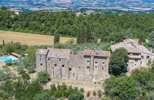 The magnificent monastery Contessa Matilde is located in Collazzone, a delightful medieval hilltop village, characterised by the unmistakable features of the Umbrian landscape and surrounded by a 3-hectare park with local flowers and plants, aromatic herbs and an olive grove of 3,500 sq m. Its history is rich and intriguing. It was built as a Benedictine Abbey and ceded to the Poor Clares in 1228. The Blessed Simon of Collazzone, companion of Saint Francis of Assisi, was witness to the donation and his mother, the Countess Matilde, and her sisters moved to the monastery to live as cloistered nuns. The story goes that the Franciscan poet Jacopone da Todi found his last refuge at the Poor Clares. In 1520 the monastery was the hiding place of Thadea, the illegitimate daughter of Emperor Charles V. Afterwards, the monastery was probably slowly abandoned. When Napoleon invaded Italy, he confiscated and sold countless ecclesiastical property to private individuals, including the Monastery which in 1805 ended up in the possession of the family who still take care of it with great love and passion. The complex of Contessa Matilde, built around an open-air courtyard of rare beauty, is clad externally in old, exposed stone and was recently restored under the tutelage of the Ministry for Cultural Heritage. The preservation of all the original details and aspects were the guideline for the restoration work and the colours and materials are inspired by the Umbrian countryside. The interior is the result of a choice of style that has perfectly blended old and modern, combining fine furnishings with those of contemporary design, having every amenity while all the bedrooms are air-conditioned. The beautiful private swimming pool has a covered area for outdoor dining and a living area. Two other covered outdoor areas are equipped with a wood oven and barbecue, the ideal spots for cooking and enjoying pleasant outdoor meals. Contessa Matilde offers a unique opportunity for organising events and receptions in its large halls and outdoor spaces such as the courtyard. The property includes a Romanesque church located just outside the garden, with an old crypt; the church can occasionally be used for celebrations. On request, not included in the rent, the house is completed by a majestic living area located on the ground floor with direct entrance from the courtyard. The hall is equipped with tables, chairs, projection screen and a guest bathroom and can be used use for business meetings, ceremonies and parties. The Monastery, located in Collazzone, is the perfect starting point for excursions to Todi, Orvieto, Perugia, Assisi and Spoleto, as well as to Florence and Rome, as it is just a few kilometres from the E45 highway, that connects all of Umbria as well as Tuscany and Lazio. Services and shops for basic necessities can be found in Collazzone, just 5 minutes away on foot.