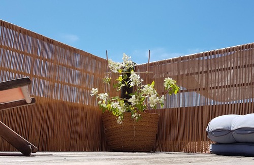 Ground floor, 1 shaded terrace - with outdoor living room and wooden table for 8 people, 2 bedrooms,1 bathroom with Italian shower, 1 separate toilet,