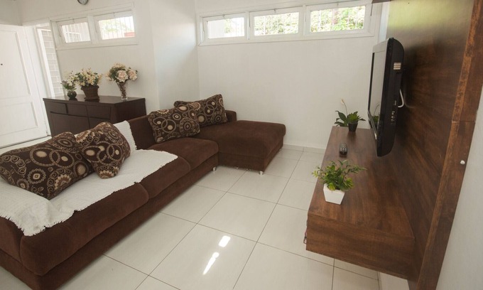 Comfortable 3 bedroom house (with air conditioning), 2 bathrooms, combined living and dining room, kitchen with electric and household utensils, laundry, covered garage for three cars, barbecue and ample free space. Cable TV and free Wifi