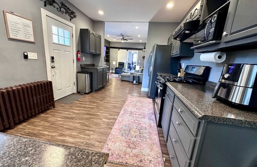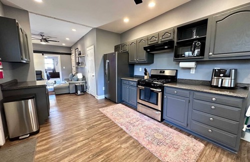 Experience the best of Pittsburgh with this stylish and centrally-located home. Relax in the large bedroom with a king-size bed, enjoy the convenience of a full kitchen and soak up the plush entertainment of 2 large TVs. The Southside Flats are located .5 miles away and downtown just 2 miles away. Enjoy a hassle-free experience with no stairs within the property (There are steps to enter the house) Chore free checkout! *This is a lower unit in a duplex. The drive does involve steep hills!