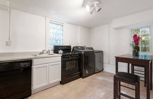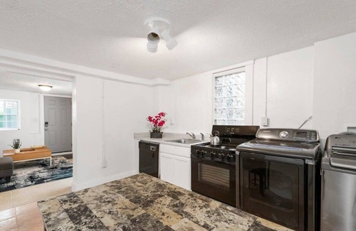 This beautiful craftsman duplex is located near downtown Atlanta. Nestled into a residential community that is within two miles of Morehouse College, Mercedes Benz Stadium and many other major ATL attractions and colleges. Uber/Lyft are readily accessible in the area and the Marta bus service is less then 1 block away! The Atlanta Beltine is accessible within a 2 block stroll. This is a cozy 2 bedroom/1 bathroom daylight, basement apartment. The white brick walls, lower ceiling and industrial ambiance provide a hip, modern feel. The home comfortably sleeps 6-7 individuals including the convertible sofa. The kitchen is well-appointed with a dishwasher, washer, dryer and high top table. Also please enjoy the lovely covered porch with patio seating. The unit comes with one off-street parking space and easy street parking for extra cars.