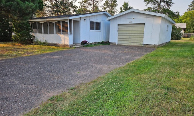 Discover this fantastic 2-bedroom gem in Hayward. This quaint house features 1 queen bed and 2 twin beds, perfect for a small group of guests. Enjoy the convenience of amenities like AC, heating, Wi-Fi, and a washing machine. The bathroom comes equipped with a hair dryer for your convenience. We have a security camera located on the front of the garageWe look forward to hosting you at our place and we'll leave the light on for you.