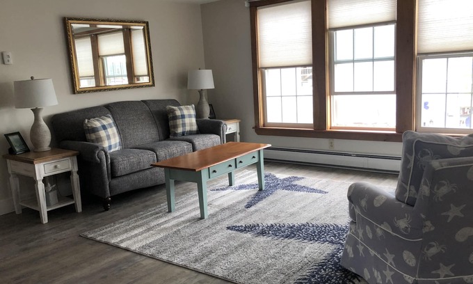 Comfortable 2 bedroom unit located in the heart of downtown Boothbay Harbor provides an easy walk to restaurants, whale watch and Monhegan cruises, includes a designated parking space and laundry access. A short drive to the popular Coastal Botanical Gardens. Located across the street from Whale Park with sunset views of the harbor.
