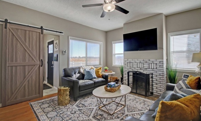 Best-rates for the Convenient location Modern Farmhouse starts from $184 per night with includes Sports/Activities, Internet, Bedding/Linens, Entertainment, Laundry, Air Conditioner, TV, Balcony/Terrace, Barbecue/Outdoor Cooking, Child Friendly, Kitchen, Parking, Security/Safety, Wellness Facilities, Fireplace/Heating with all other amenities. Perfect for Weddings is committed to ensuring every guest experiences a comfortable and extraordinary stay, whether planning a romantic getaway, a honeymoon, a pet-friendly stay, or celebrating with the entire wedding party.