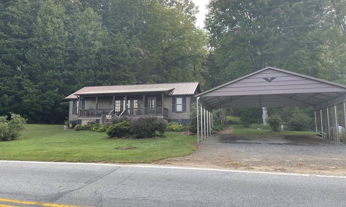 Come and stay in this beautiful 2 bedroom 1 bath mountain get-away. Hardwood floors and an open floor plan make this 1054 square foot home a great place to stay on your vacation. Convenient to beautiful mountain points of interest. One hour from Cherokee, NC. One and a half hours from Atlanta, Ga. Thirty minutes from beautiful Highlands, NC. Many hiking trails, waterfalls, hunting opportunities, and popular roads for motorcycle riders. There are numerous outdoor activities like hiking the Appalachian or Bartram Trail, bicycling, enjoy scenic waterfalls, golfing at two local courses, river tubing, white water rafting, horseback riding, zip lining, fishing, winter snow tubing, ice skating; and skiing. You can also experience our local mountain culture through Native American and Appalachian Cultural Sites and Museums, local performing arts centers, other music and entertainment venues, antiquing, curio shopping, thrift store shopping, unique dining establishments and The Fun Factory Amusement Center. A two car carport is available for vehicle/motorcycles. Sleeps 4 but a queen inflatable mattress is available for your use. Washer/Dryer included. I have listed below many local points of interest.