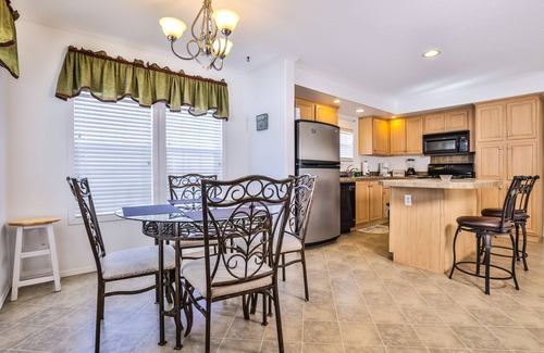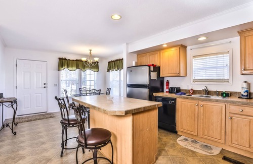 This budget-friendly home invites you to kick back and relax in the pleasant living area, furnished with comfortable sofas and a large TV where you can watch your favorite shows and movies while munching on the snack of your choice. Surprise your beloved family and friends with tasty treats and homemade meals thanks to the well-appointed kitchen. It's complete with everything you need - a full-size fridge, stove, oven, coffee maker, and even a dishwasher!