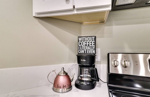 KITCHEN: Fridge, stove, drip coffee maker, microwave, cooking basics, toaster, dishware/flatware, trash bags/paper towels