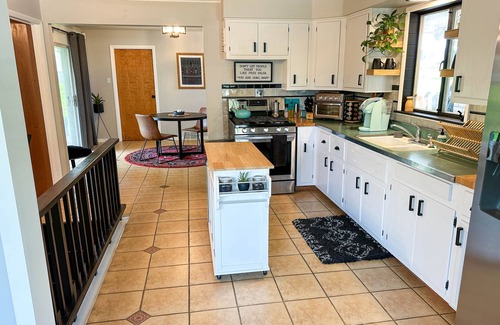 This lovely property boasts 2 bedrooms and 2 bathrooms with a finished basement, making it the perfect spot for a group of friends or family. The interior of the home is warm and inviting, with comfortable furnishings and tasteful decor throughout. There are two bedrooms with full beds on the main level, and a full/twin bunk bed in the basement. The large sectional in the living room could also sleep two people if necessary, as well as a twin fold out cot in the basement.