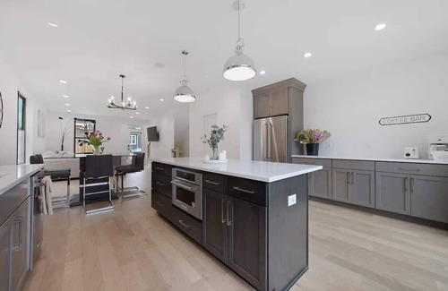 ☀ Kitchen Island + Full Kitchen/Dining on the First Floor with quartz countertops, premium appliances, and your soon-to-be favorite coffee🥳