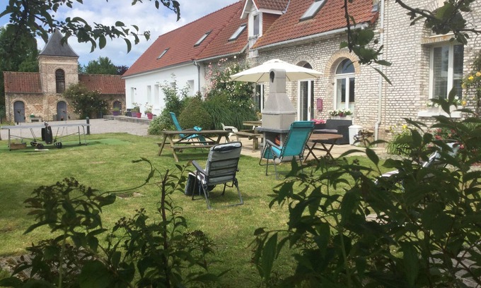The house is in the centre of a sleepy village of Sorrus and near the medieval town of Montreuil sur Mer, The house is set within its own private grounds. This converted farm house is tastefully furnished and has a well equipped kitchen including dishwasher, fridge freezer, and microwave. The dining room seats 10. Also an out-door table tennis table, indoor pool table and BBQ facilities. The master bedroom has a Napoleonic Bed c 1791. The owner lives next in the attached building most of the year.