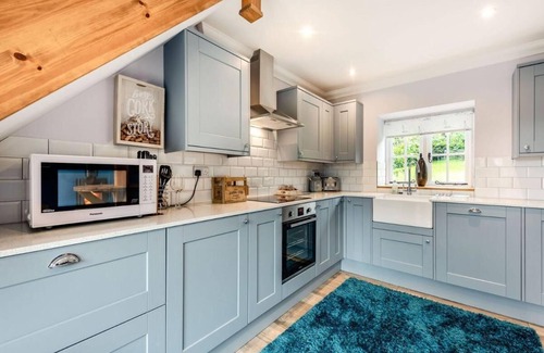 Upstairs, guests have two king-size bedrooms, both with Smart TVs and en-suite bathrooms, which promise a restful night’s sleep in the peace and quiet of a farm setting. French doors lead to the patio area where you will find a barbecue and outdoor furniture. The secure, enclosed garden is perfect for children and four legged friends to stretch their legs. There is enough private parking for two vehicles.