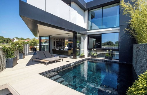 Modern 4-bedroom retreat just 100m from Cooden Beach. Features include a private summer pool (available between mid May-mid September approximately), cinema room, gym, tropical fish tank, and views over the golf course. The home has 3 bathrooms, a large open-plan living space, and gated parking. Just 1 minute from the train station with direct links to London. Perfect for a stylish seaside escape with friends or family.