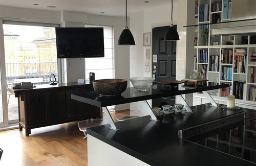 The penthouse is a newly built conversion on top of what used to be a pub-house (turned into a cool and lively cafe) and is great both for business visitors to London (walking distance to the City, 2 stops from Kings Cross), as well as tourists (a 10 min walk to St. Paul's and from there take the tube to Oxford street or cross the river over to the Tate Modern for example).