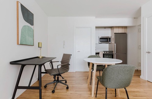 As with any Blueground apartment, you’ll find a thoughtfully designed space complete with beautiful furniture and a fully equipped kitchen in this studio property. And, thanks to our superior quality mattresses, luxury linens, and towels, you can relax knowing you’ll always feel comfortably at home. When you’re ready for some fun, you can take in the New York vibes or bring the entertainment to you with the premium wireless speaker or smart TV.