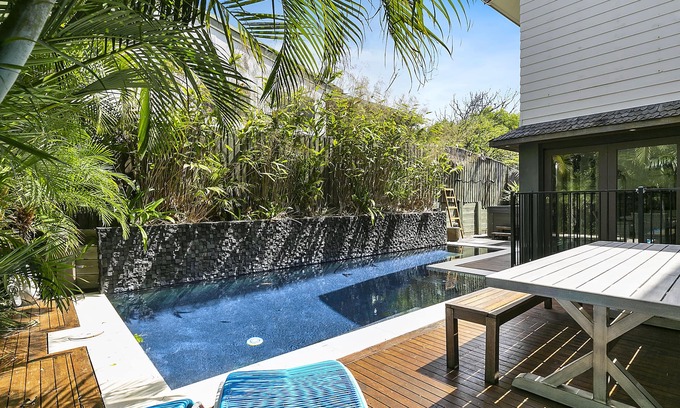 The home is set out wonderfully so you can push open the sliding doors and let the feel of the Balinese inspired pool flow indoors.