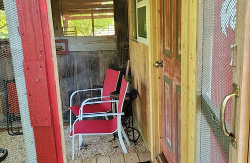 Enjoy the peace and security of a cozy and familiar space, protected from the outside environment; like chicks gathered under a hen's wings. Settle easily into our totally revamped, recycled and repurposed chicken house! Sway slightly as you lie back in two, single-person hammocks from Eagle's Nest Outfitters....soooo comfy and airy....an easy short flight to dreamland.