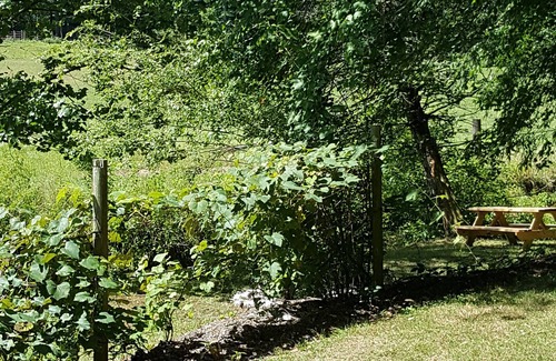 Wake in the morning to the sounds of the creek running just below and the farm animals across the way. Stretch your wings and turn up the fire on the Coleman X-Cursion grill with its "swaptop" features to heat water for that first cup of coffee (prepared with Aeropress coffee press). Set your tail-feathers down and enjoy the start of another Southern Blue Ridge Mountain morning, unbothered in the screened-in "patio" area. Go ahead, you can preen a little! You made a great choice! Our nest is your nest!