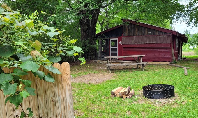 You can also enjoy the picnic table and fire ring right outside the door! We have done all we could think of to give you the camping amenities you asked for, while giving you the comfort of a protected space. Check the pics, although I'm afraid they don't do justice to the space! No electric, no wifi, no running water, but lit by battery-powered LED. Also super-close to clean, sanitized "outhouse" (porta-jon) and a short walk to the brand new on-demand hot water shower room located near pump house. This is a drive-up site. 2 person maximum occupancy.