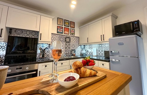 Modern Amenities: Enjoy all the modern comforts, including a well-equipped kitchen with top-quality appliances such as an AEG electric induction hob, AEG electric oven, microwave, and dishwasher. The dining area, which seats up to six, is ideal for family meals and gatherings.