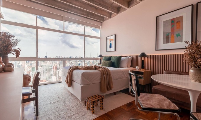 Studio in the most famous building designed by Oscar Niemeyer, Copan. Our decorated and planned apartment is on the 31st floor with an incredible view of the city.