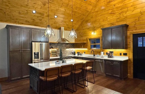 Every corner of Copper Cliff Cabin reflects a commitment to luxury, comfort, and convenience. The property spans 23 private acres, inviting you to revel in the beauty of sprawling woodlands, rolling hills, and serene ravines. The gameroom and basement provide ultimate entertainment with a pool table, kids` nook, and wet bar with a wine cooler, along with direct access to the outdoor hot tub. The master bedroom`s screened-in porch (coming soon!) offers a private outdoor oasis for relaxation. Heated floors in the bathrooms ensure cozy mornings, while the electric car charger provides convenience for eco-conscious travelers. The spacious back deck overlooks a peaceful wooded ridge, perfect for enjoying morning coffee or gathering with loved ones. High-end finishes, from luxurious furnishings to premium appliances, elevate every element of your stay. Each bedroom’s private en-suite bathroom guarantees comfort and privacy, while outdoor amenities—like the soon-to-be firepit—create spaces for unforgettable memories under the stars.