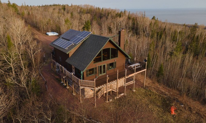 This chalet is perched atop Brockway Mountain and surrounded by nature conservancy land. This pristine 20-acre retreat, only 3 miles from Copper Harbor, offers stunning panoramic views of Lake Superior and the surrounding wilderness. Here is where you can enjoy inspiring sun and moon rises, amazing stargazing, Great Lakes freighters, and the Northern Lights show. Or just lose yourself in the peace and serenity of nature while relaxing on the wrap around deck or in front of the stone fireplace.