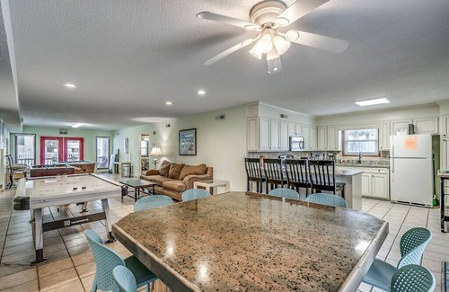 The amenities at Coral Breeze are designed to enhance your wedding experience. Revel in the luxury of a private swimming pool and hot tub, perfect for relaxation after the big day. Enjoy entertaining your guests in the spacious game room featuring a pool table, air hockey, and foosball. With two big-screen televisions and additional TVs in most bedrooms, everyone can unwind and catch up on their favorite shows. The exterior entrances provide easy access to each level of this two-story beach house, ensuring seamless gatherings and celebrations. There is also ample parking space for up to 12 cars, accommodating all your wedding party’s needs!