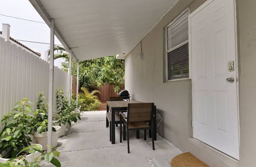 This exclusive garden-side unit provides the perfect setting for a comfortable stay in a quiet location. This property has a fun hosting area located outside, as well as a propane BBQ to use while soaking up the Miami sun! The unit has been completely renovated and is in impeccable condition. It's perfect for a small group or intimate setting. We do not recommend this unit for more than 5 people. If you are looking for comfy and cozy, this is the spot!