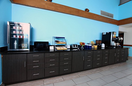 Each simply furnished guest room at Coratel Inn & Suites By Jasper Newton has a microwave and refrigerator and free Wi-fi. Cable TV and free local calling are also available. Waffles, pancakes and fruit are part of the continental breakfast served every morning at this pet-friendly Newton motel.