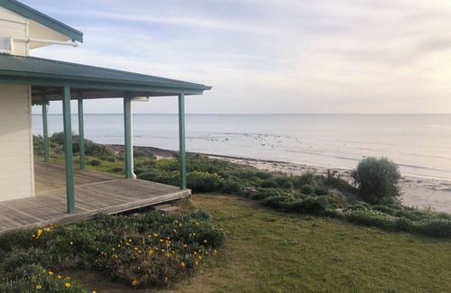 A character filled light and airy original shack located right on the beach at Hardwicke Bay with expansive views across turquoise water and pristine beaches. Uniquely placed to enjoy the coastal environment and dynamic bird life right in front of your door – there is no road between you and this breath taking vista. The samphire covered rocky point and endless beaches provide hours of entertainment for nature lovers & intrepid explorers.