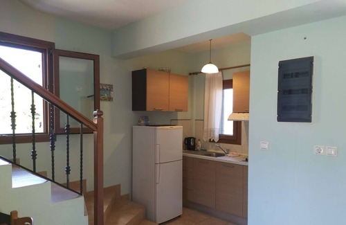 The maisonette houses are located in Steni Vala, approx. 10 km from Patitiri (port town). The location is suitable for quiet holidays but also for diving and snorkeling. There is even a diving school on site.